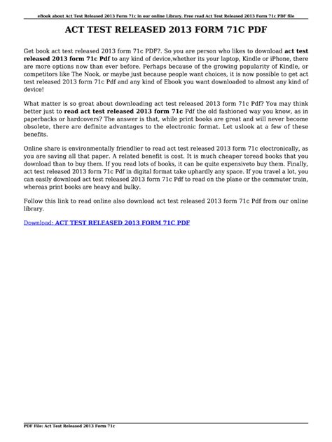 Reading Online act test released 2013 form 71c iBooks Internet Archive